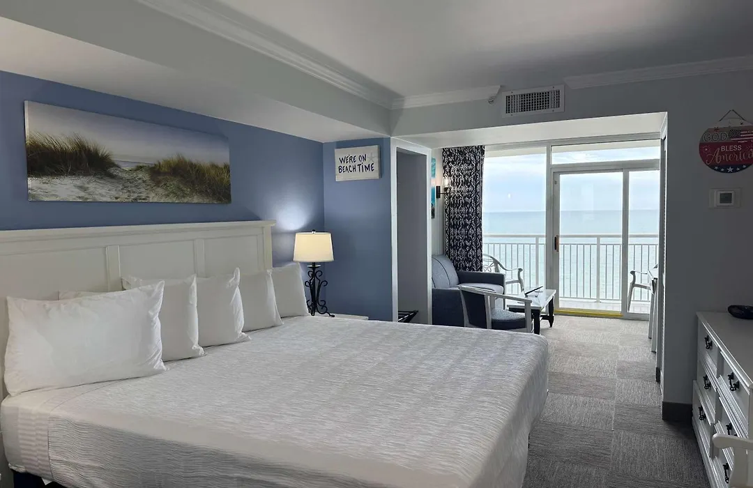 Amazing Views - Kings Size Ocean Front Camelot 715 Villa Myrtle Beach is located a mere 1 km from the Myrtle Beach Sling Shot amusement ride|the Myrtle Beach Sling Shot and provides an outdoor swimming pool, ensuring a relaxing stay.